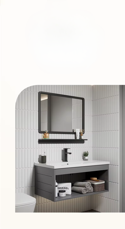 Έπιπλο μπάνιου με νιπτήρα ράφι και καθρέπτη Γκρι 70*50cm
