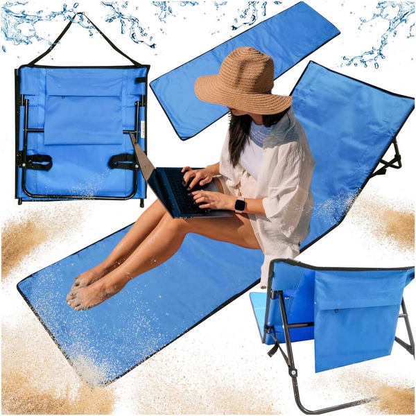 Η ξαπλώστρα είναι πολύ ελαφριά και πιάνει λίγο χώρο όταν διπλώνεται. Επιπλέον, διαθέτει άνετη λαβή για εύκολη μεταφορά και πρακτική τσάντα προσαρμοσμένη στην πλάτη, στην οποία μπορείτε να κρύψετε το τηλέφωνο, τα κλειδιά ή άλλα μικροαντικείμενα.