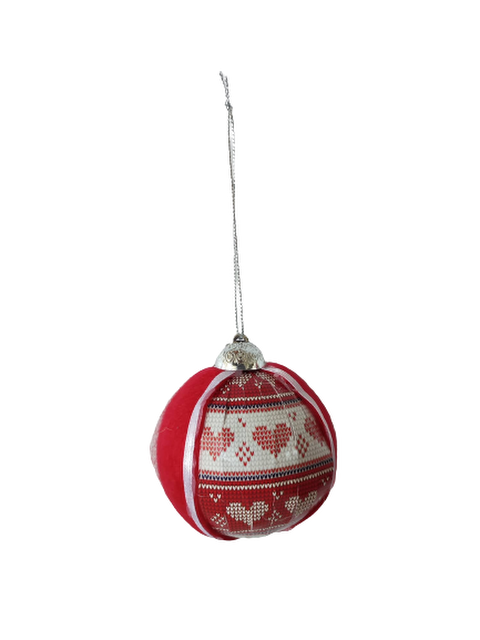 Χριστουγεννιάτικη Μπάλα Καρδιά- Καρό Κόκκινο-Χρυσό 10cm