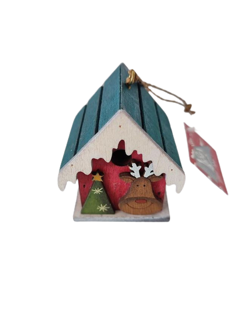 Χριστουγεννιάτικο Κρεμαστό Ξύλινο Στολίδι Σπιτάκι με Ρουντολφ 7x8cm