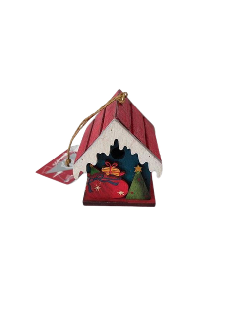 Χριστουγεννιάτικο Ξύλινο Κρεμαστό Στολίδι Σπιτάκι με Δώρα 7x8cm