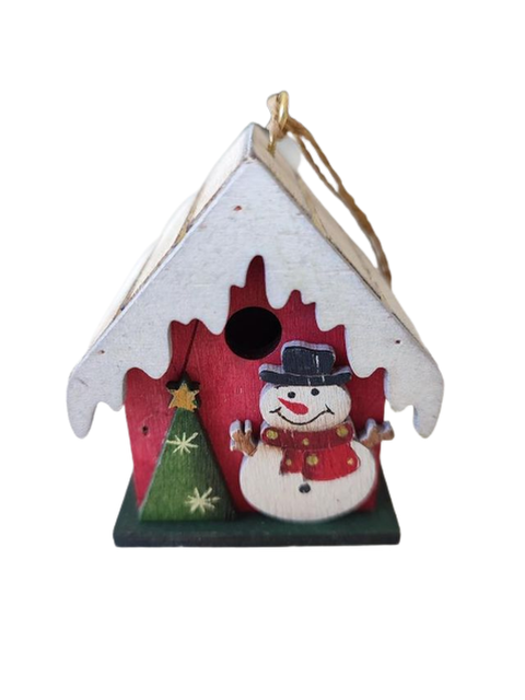 Χριστουγεννιάτικο Ξύλινο Κρεμαστό Στολίδι Σπιτάκι με Χιονάνθρωπο 7x8cm