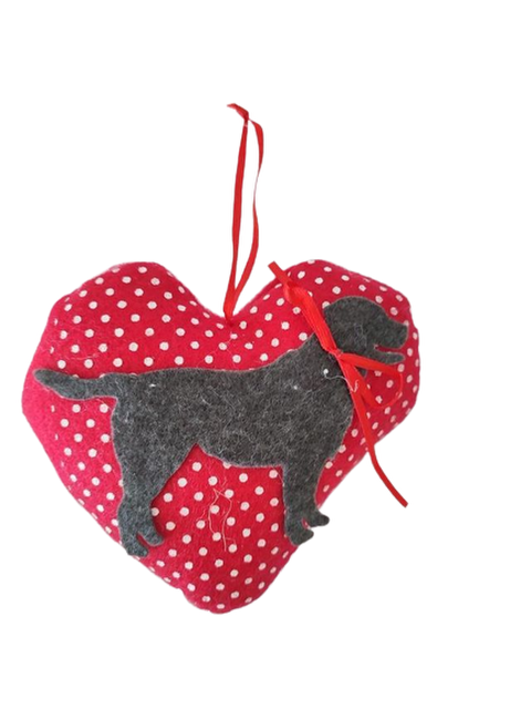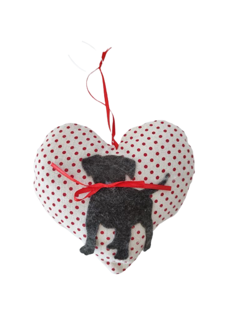Χριστουγεννιάτικο Κρεμαστό Στολίδι - Μαξιλάρι Καρδιά με Σκυλάκι 15cm Κόκκινο
