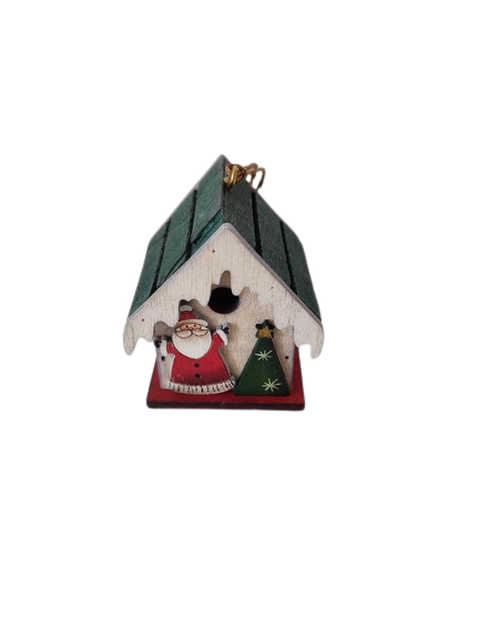 Χριστουγεννιάτικο Κρεμαστό Ξύλινο Στολίδι Σπιτάκι με Αι-Βασίλη 7x8cm