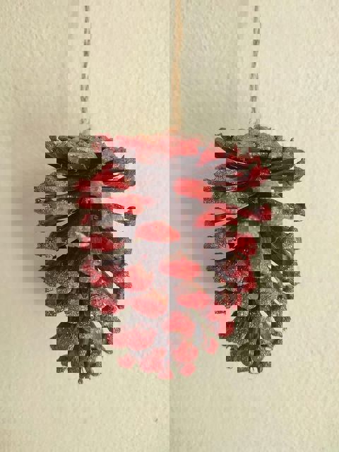 Χειροποίητο Χριστουγεννιάτικο Κρεμαστό Στολίδι Κουκουνάρι με Γκλίτερ 7-11cm