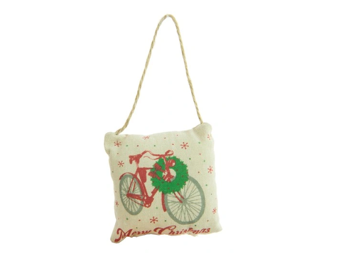 Χριστουγεννιάτικο Κρεμαστό Στολίδι - Μαξιλάρι με Ποδήλατο 13cm