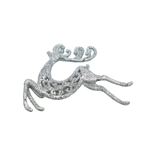 Χριστουγεννιάτικο Στολίδι Ασημί Ελάφι με Glitter 15Πcm