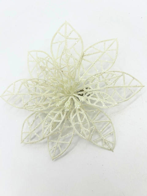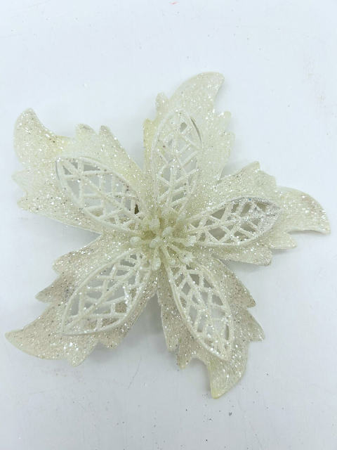 Χριστουγεννιάτικο Στολίδι Λουλούδι Μίνιμαλ με Glitter Τσιμπιδάκι 15cm Λευκό