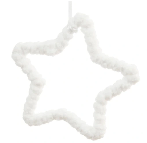 Χριστουγεννιάτικο Γούνινο Στολίδι Δέντρου-Λευκό Αστέρι 12x12.5cm